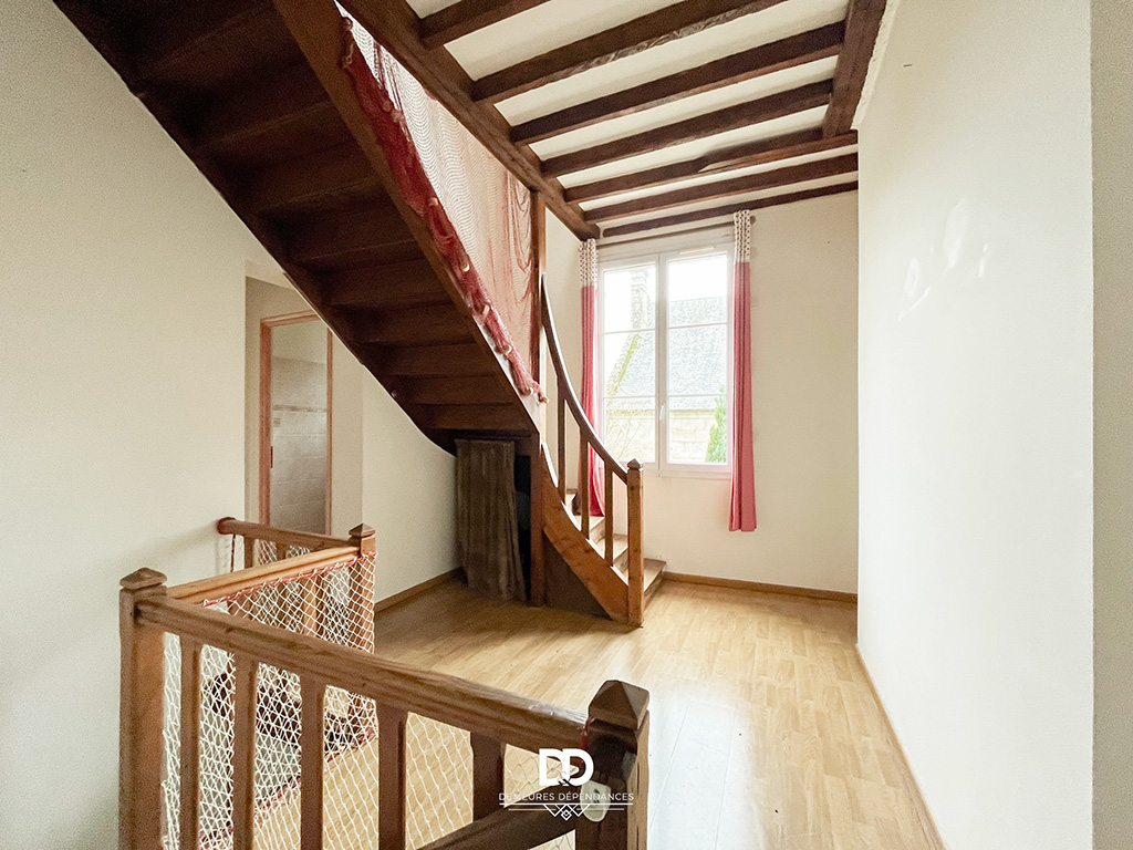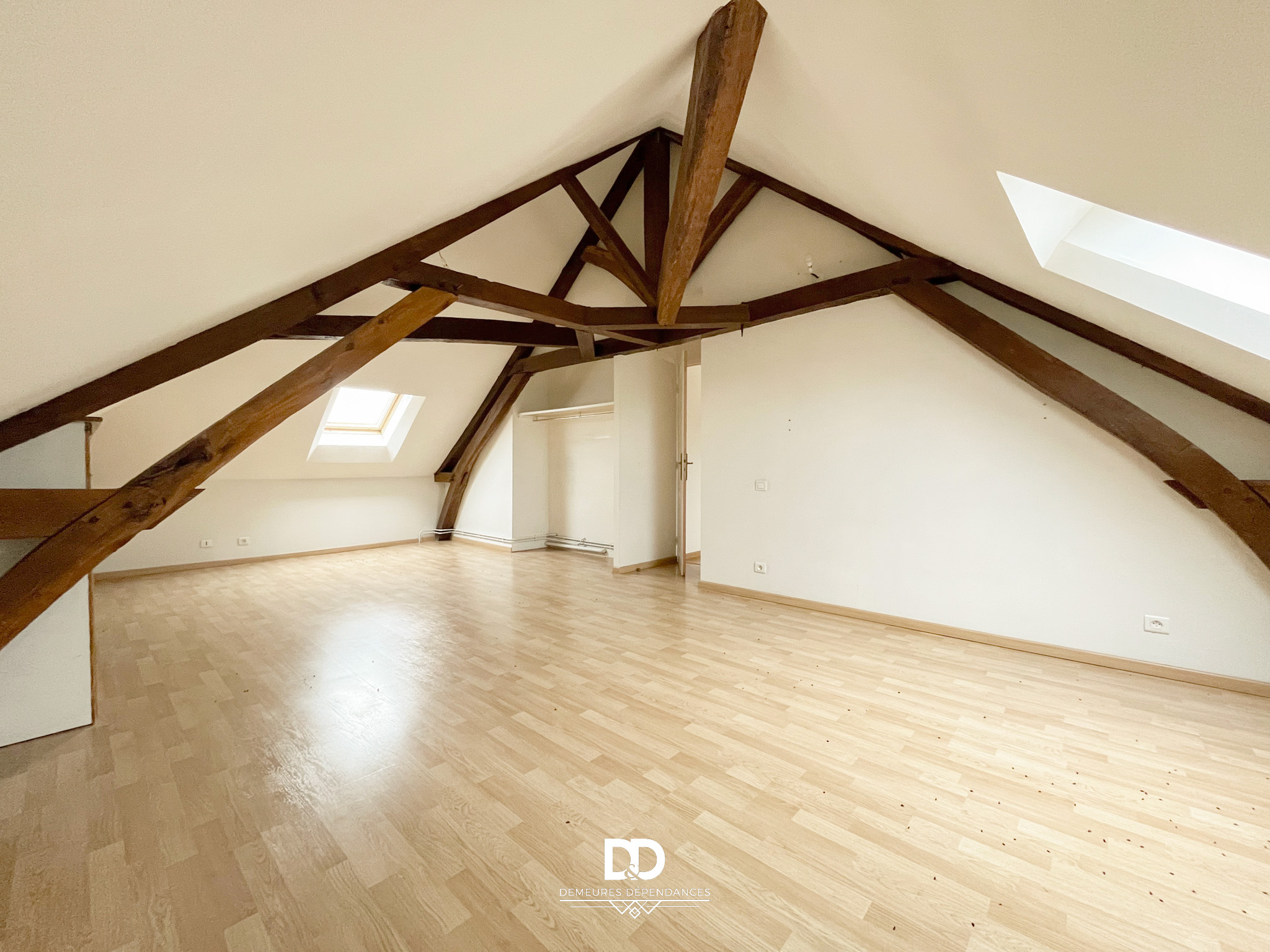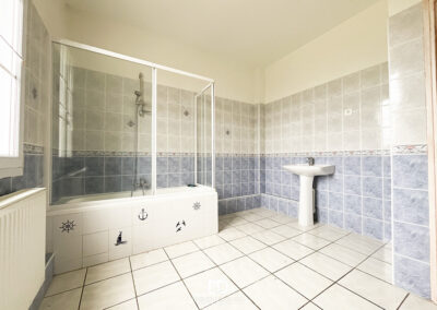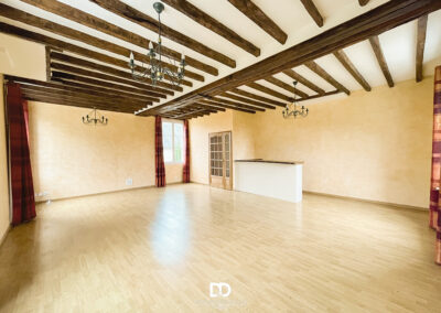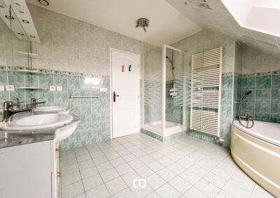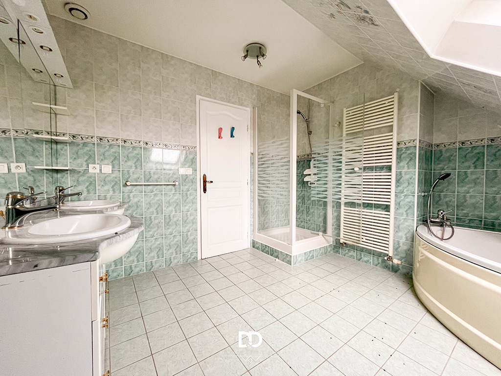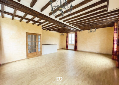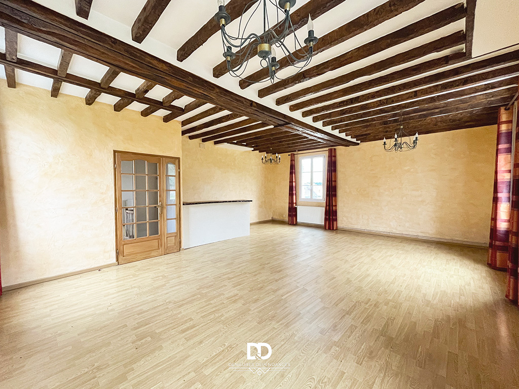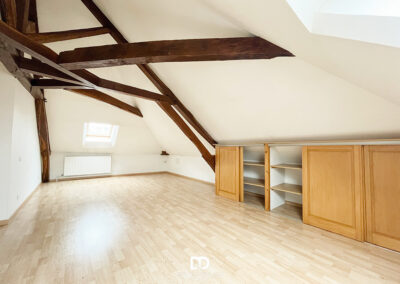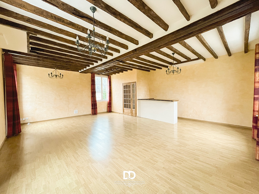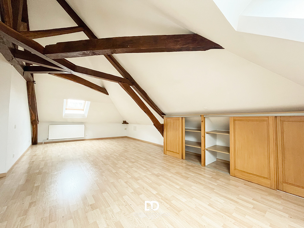 Au premier étage se déploient les pièces de vie principales : une cuisine aménagée de 17,5 m², un salon-séjour lumineux de 46 m², une chambre et une salle de bains. Le second étage propose deux chambres supplémentaires, un bureau pouvant faire office de chambre, une seconde salle de bains ainsi qu’un espace annexe. L’ensemble est en bon état général et présente un potentiel certain de modernisation pour révéler pleinement le caractère de l’ancien.