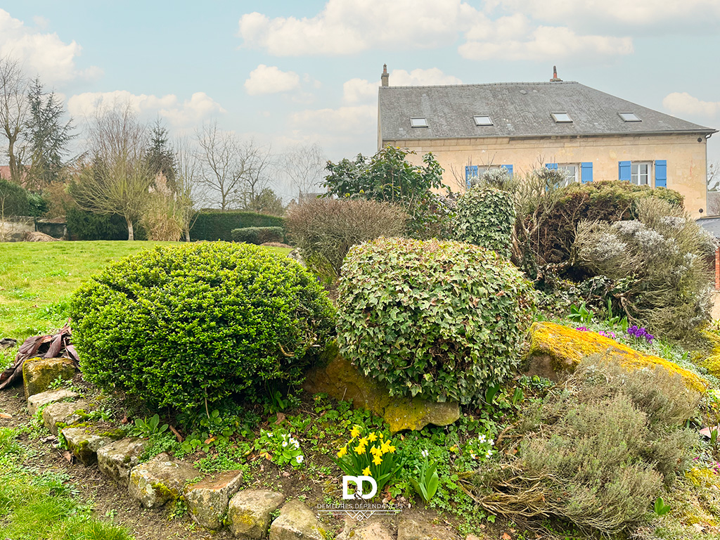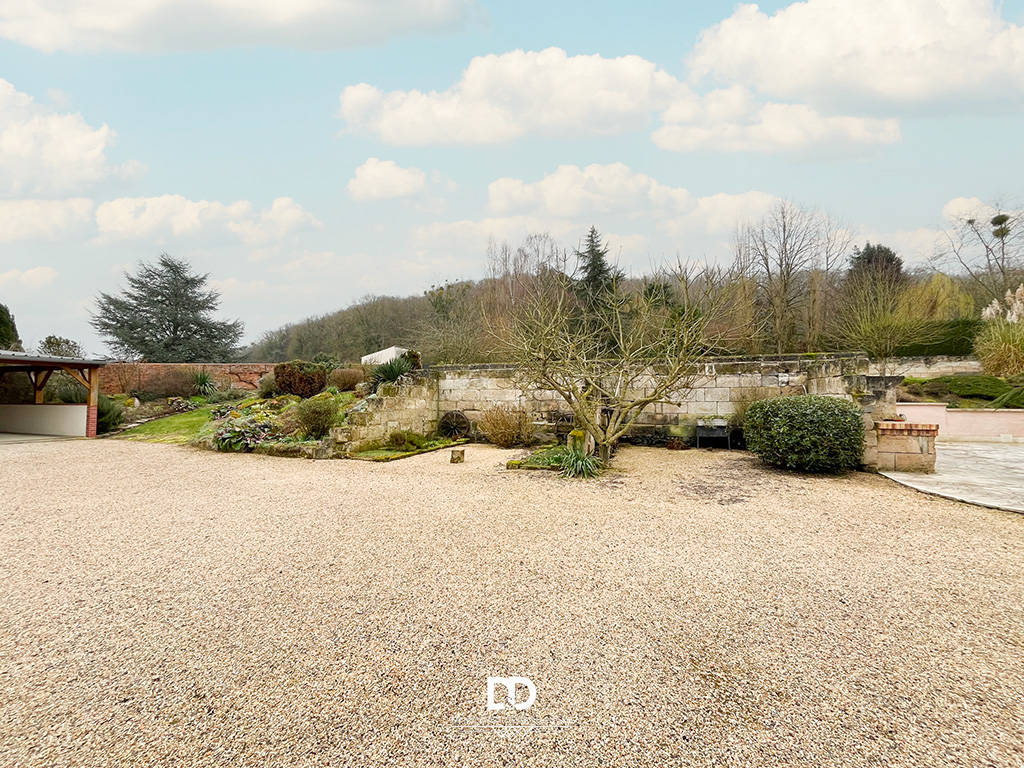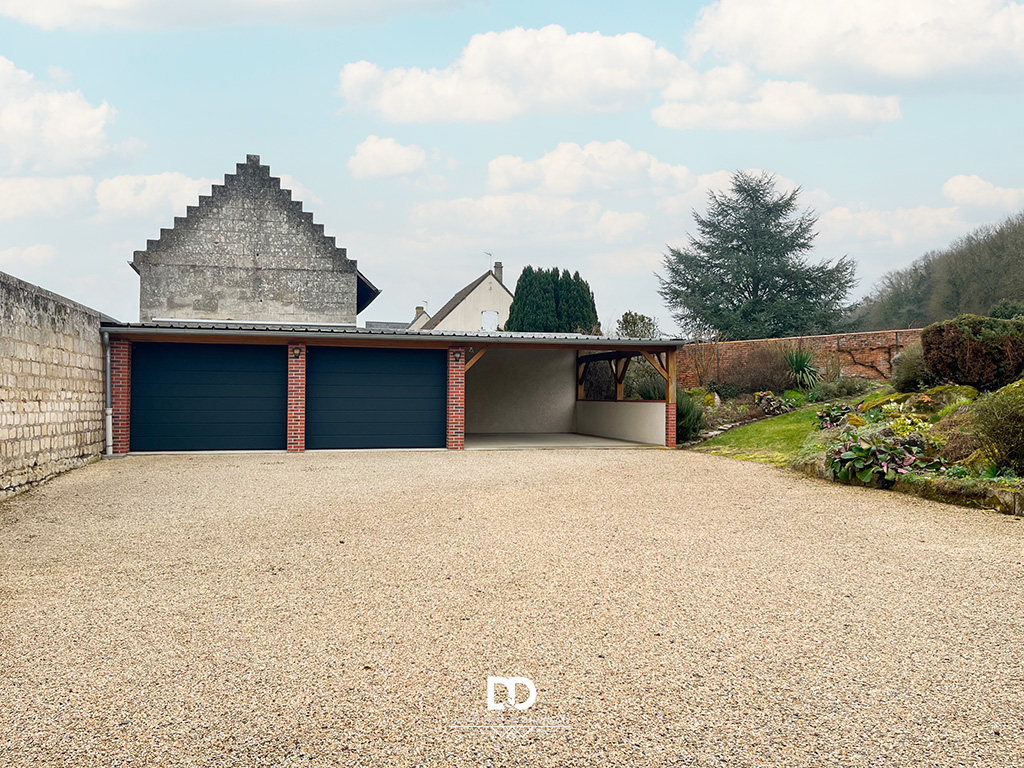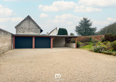 Les extérieurs constituent un véritable atout : jardin paysagé soigné, terrasse en pierre de qualité, petites dépendances, ainsi qu’un double garage d’environ 45 m² complété par un carport attenant de 33 m². Ces prestations offrent un confort rare dans le secteur et répondent aux attentes actuelles en matière de stationnement et d’espaces de rangement.
