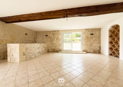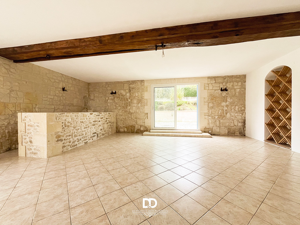 Le rez-de-chaussée accueille une vaste pièce de 50 m² aux murs en pierre apparente, ouverte sur l’extérieur par une baie vitrée donnant accès à une superbe terrasse en pierre naturelle d’environ 50 m². Une entrée indépendante, une buanderie, une chaufferie avec accès extérieur ainsi qu’une pièce complémentaire viennent enrichir ce niveau, offrant la possibilité d’aménager un logement distinct, un espace professionnel ou une activité d’accueil de type location saisonnière.