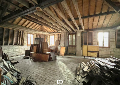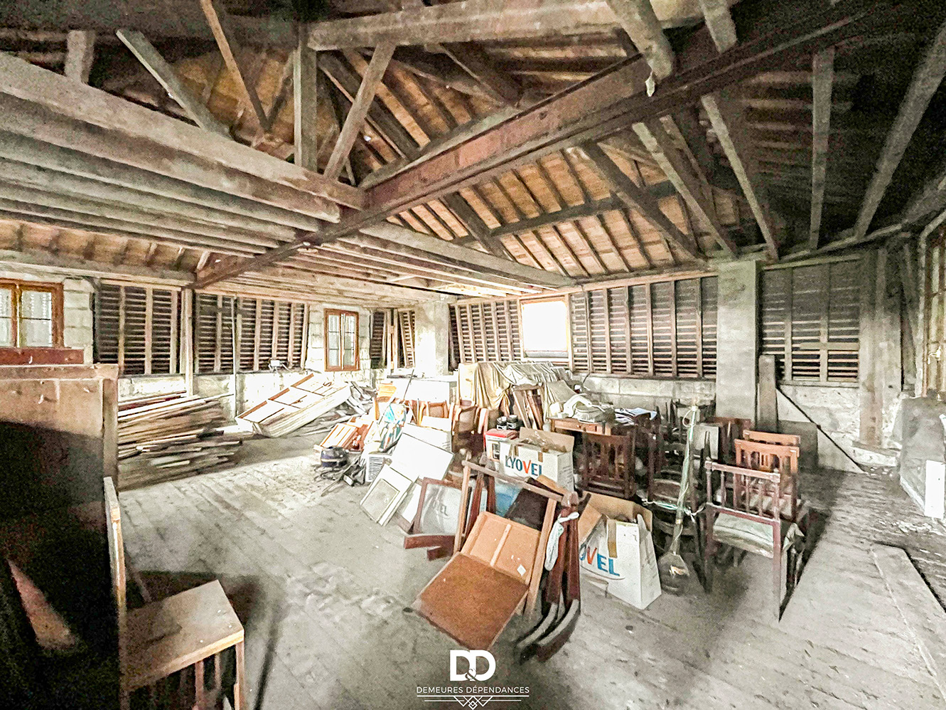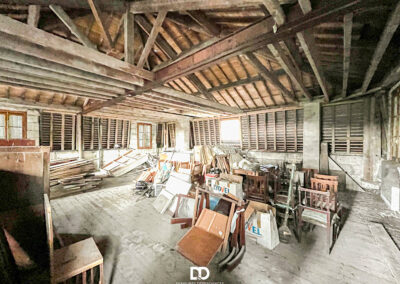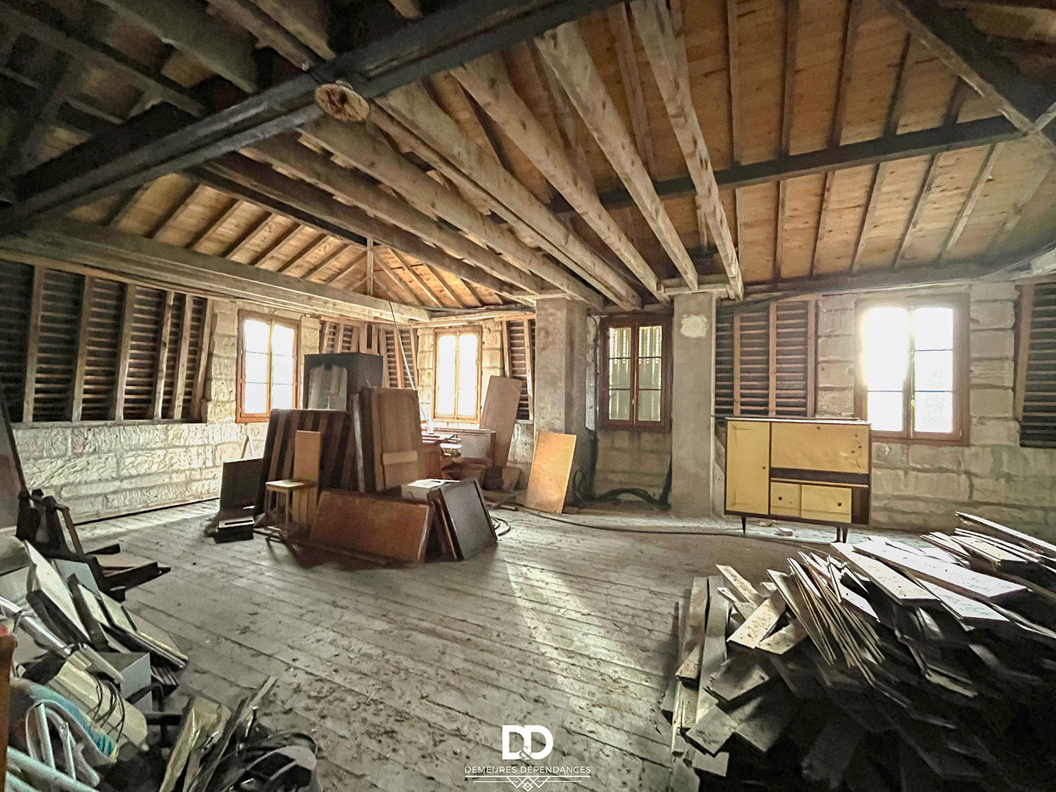 Au bout du couloir, un escalier mène à un vaste plateau ouvert d’environ 100 m². Déjà doté de fenêtres et de vélux en double vitrage, cet espace laisse entrevoir de multiples possibilités : chambres supplémentaires, suite parentale, atelier d’artiste ou grand espace de vie contemporain sous les toits.