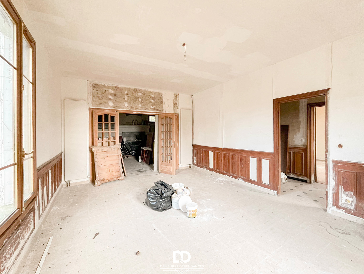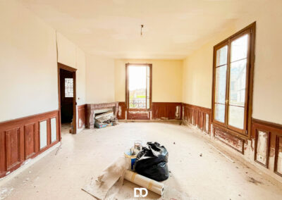 Développant un potentiel d’environ 200 m² habitables, la propriété s’ouvre sur une entrée traversante distribuant harmonieusement les pièces du rez-de-chaussée. À gauche, une vaste pièce de 26 m², baignée de lumière et agrémentée d’une cheminée en marbre, se prête idéalement à l’aménagement d’un élégant séjour. Dans son prolongement, séparée par des portes vitrées, la future cuisine (19 m2) prend place autour d’une grande cheminée ancienne, promettant une atmosphère chaleureuse et conviviale.